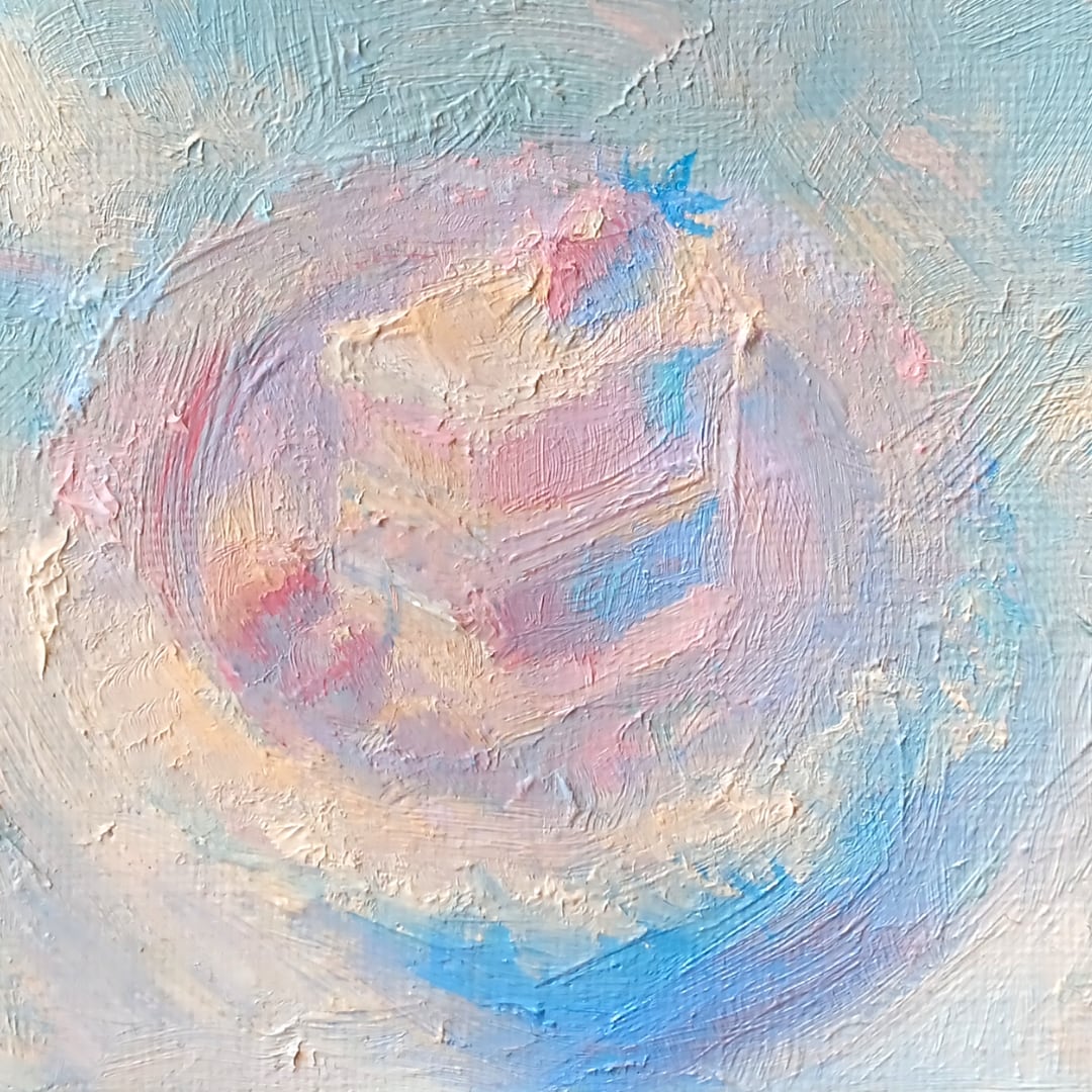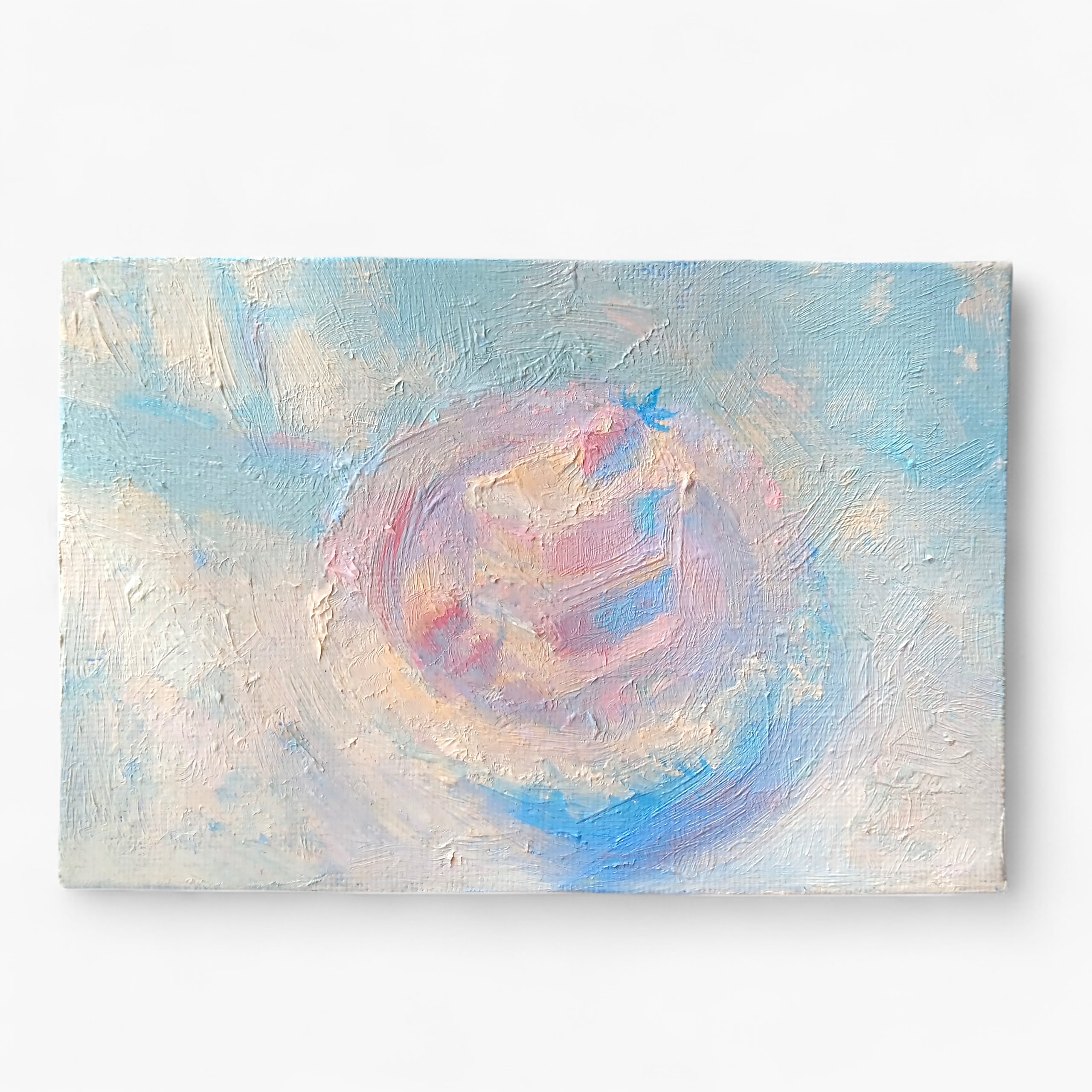 薄い雲の層みたいに、色が重なって見えるように仕上げました。